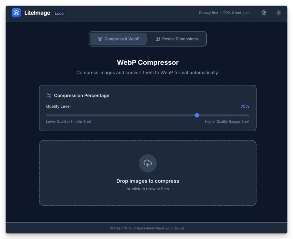 When I found out about Gemini 3 Pro, I thought, why not build this myself? I wanted something that could compress images to WebP format right on my computer, with no uploads to external servers. I also wanted the ability to resize images if needed. This tool would be for me first, but I figured others might find it useful too.